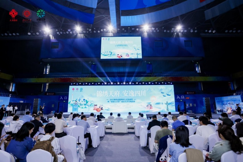 9月27日,“锦绣天府 安逸四川”2025知名高校四川人才活动季暨“蓉漂人才荟”北京大学专场在北京大学邱德拔体育馆举行。活动通过政策推介、大赛启动、基金发布及现场双选等多种形式,全面展示四川各地的机遇之门、诚意之心,184家企业、840个优质岗位,吸引逾千名在京高校学子。